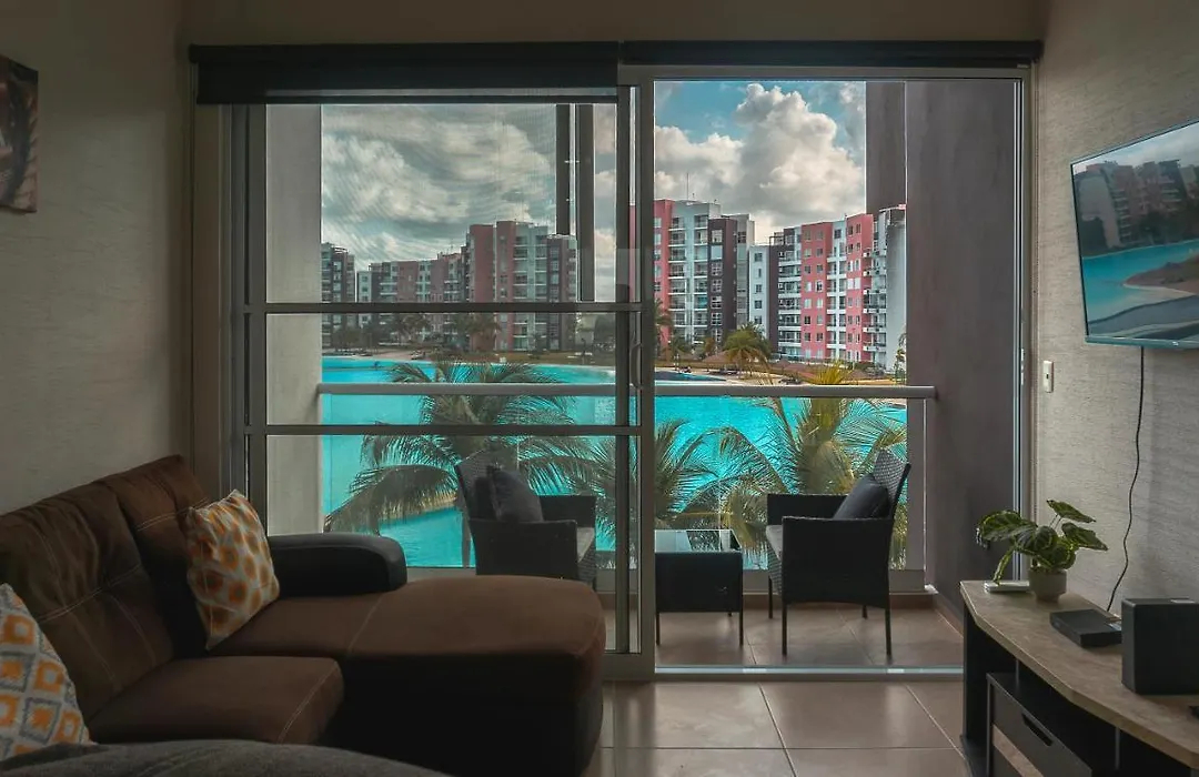 Dr02 Departamento Moderno Con Vista A La Laguna En Dream Lagoons apartment is located approximately a 15-minute drive from Toro Valenzuela Stadium and offers spa facilities such as an outdoor swimming pool. A car park is available on site.